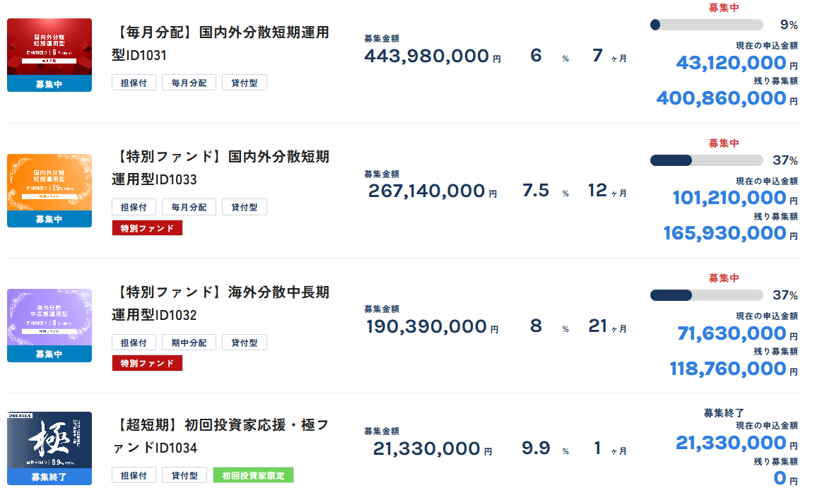 毎週新ファンドが登場する豊富な投資機会も大きな魅力です。案件不足に悩まされることなく、常に新しい投資先を選べる環境は、積極的に資金を運用したい投資家にとって理想的です。