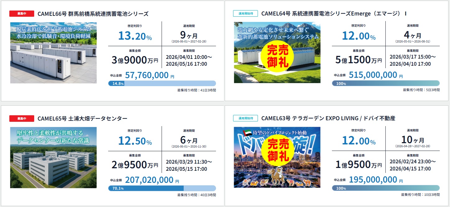 先着順のため倍率が低めな点も現実的なメリットです。他の人気サービスでは抽選に何度落選しても投資できないケースが多いですが、CAMELは先着順で応募期間も長いため、ほぼすべての投資家が参加できる雰囲気があります。