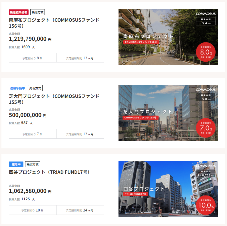 第二に、TRIADファンドというCOZUCHIとの提携案件で利回り6.5〜10%という水準が実現しており、他サービスにはない独自の投資機会があります。