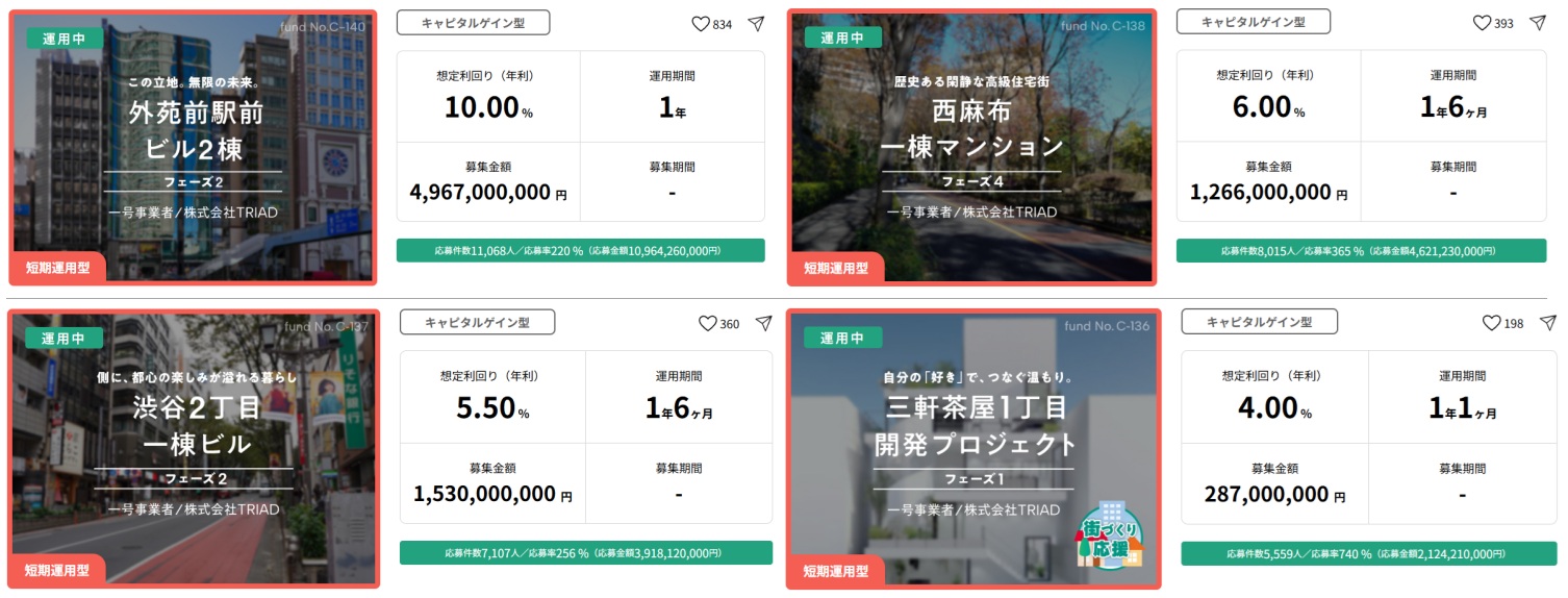「攻めたいときは短期型、守りたいときは中長期型」という使い分けができる点は、他の不動産クラファンにはない大きな差別化要素です。