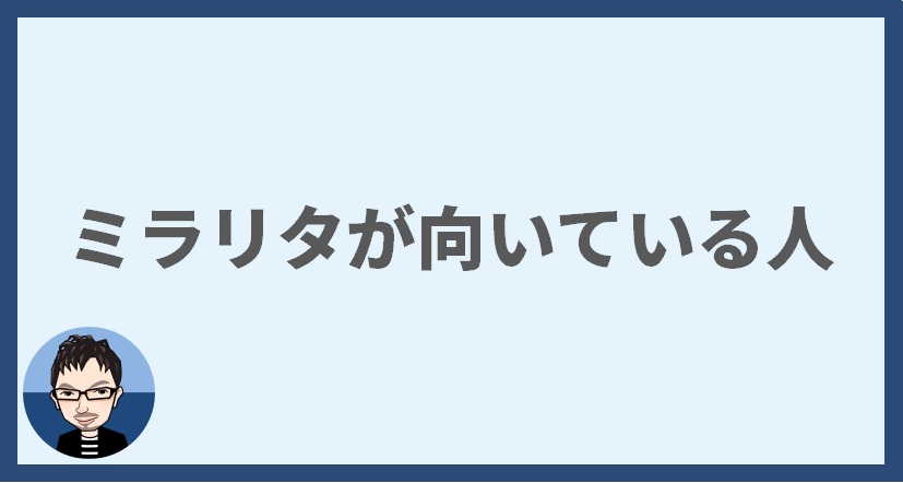- ミラリタはどんな人に向いているか|向いている人・向いていない人