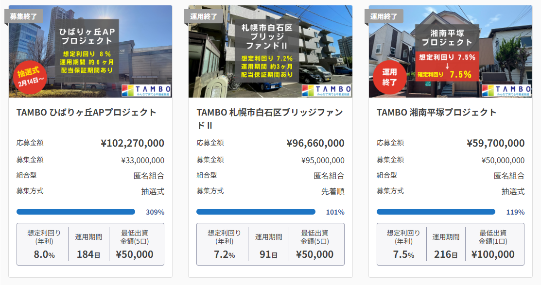 しかしTAMBOでは、これまでの実績として利回りが上振れたケースが複数あります。