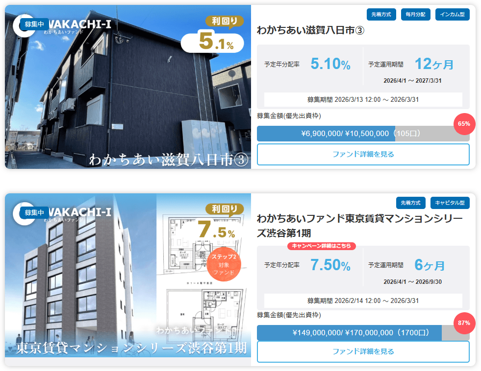 募集頻度が高く、先着順で投資ができる点が魅力で、2025年だけでも複数のファンドが月単位で次々にリリースされており、投資タイミングを逃さず参加できる環境が整っています。